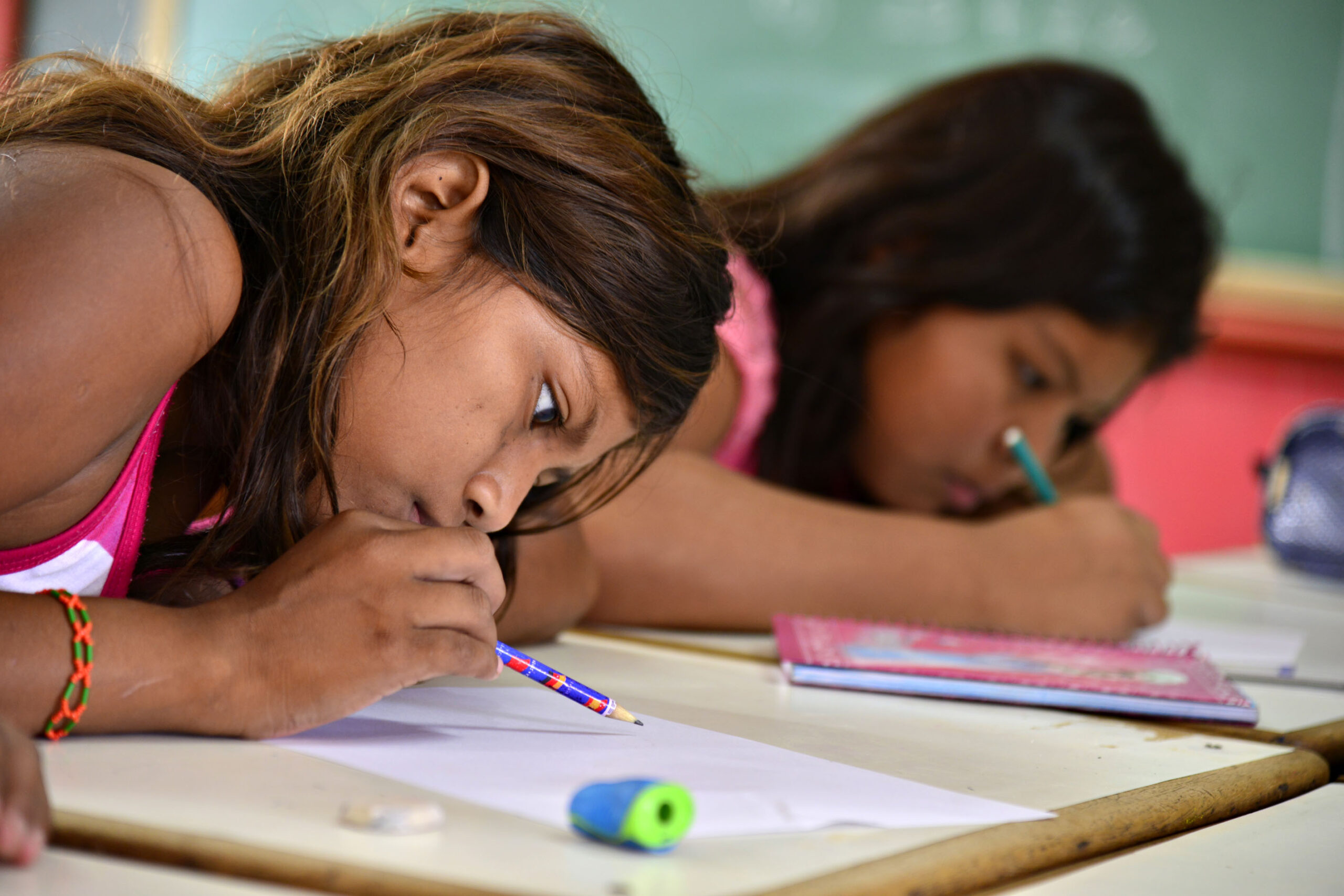 (Na foto, estudantes indígenas da aldeia Três Jacus, na TI Tirecatinga, do povo Nambikwara – Foto: Adriano Gambarini/OPAN)